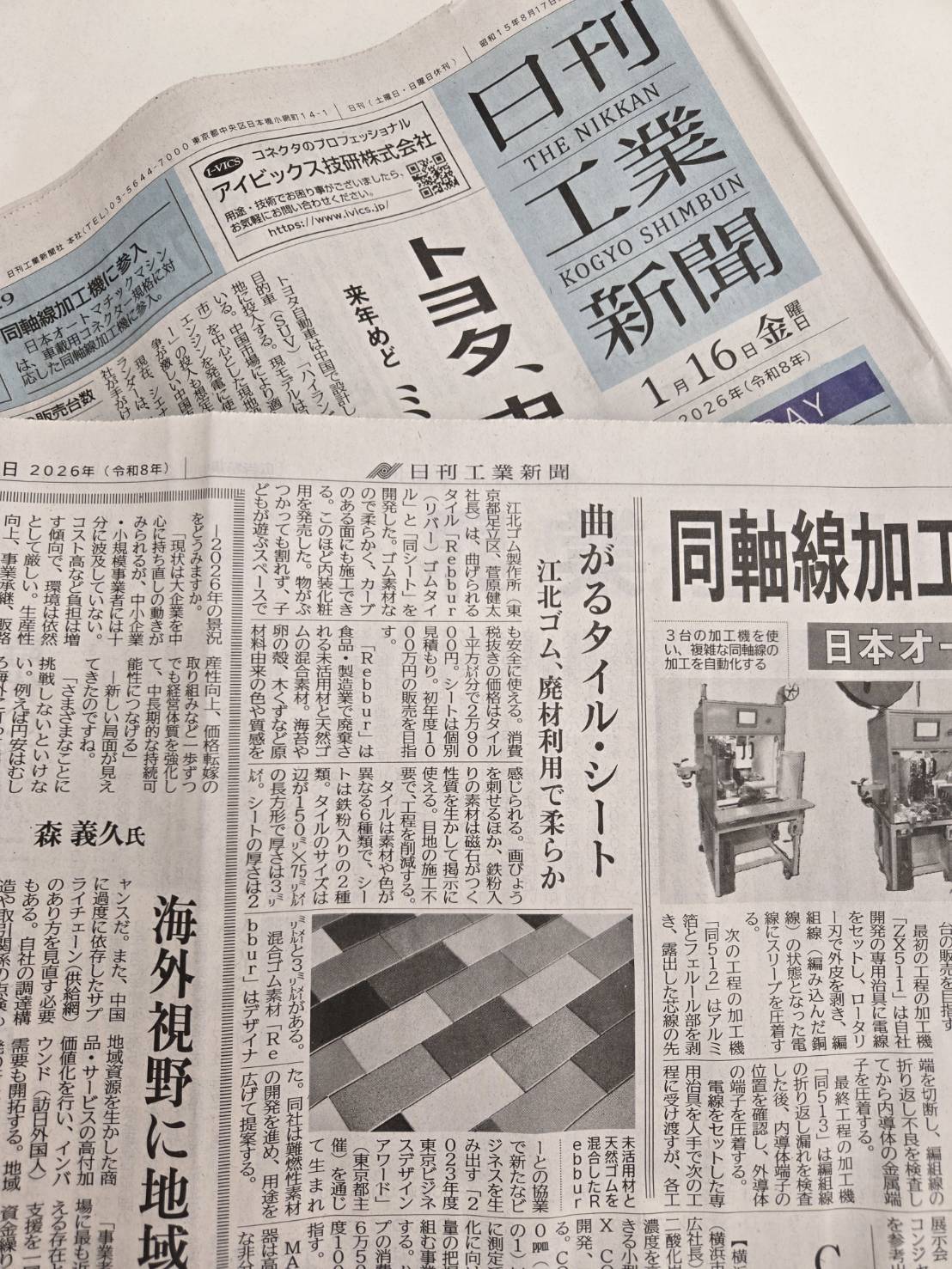 2026年1月16日(金)発行の【日刊工業新聞】紙上で、当社「Rebbur」の「ゴムタイル」と「ゴムマグネットシート」が紹介されました。